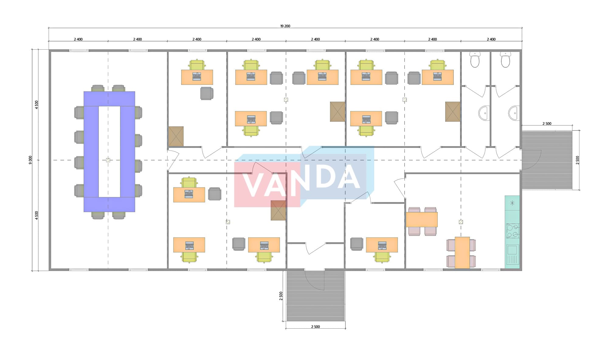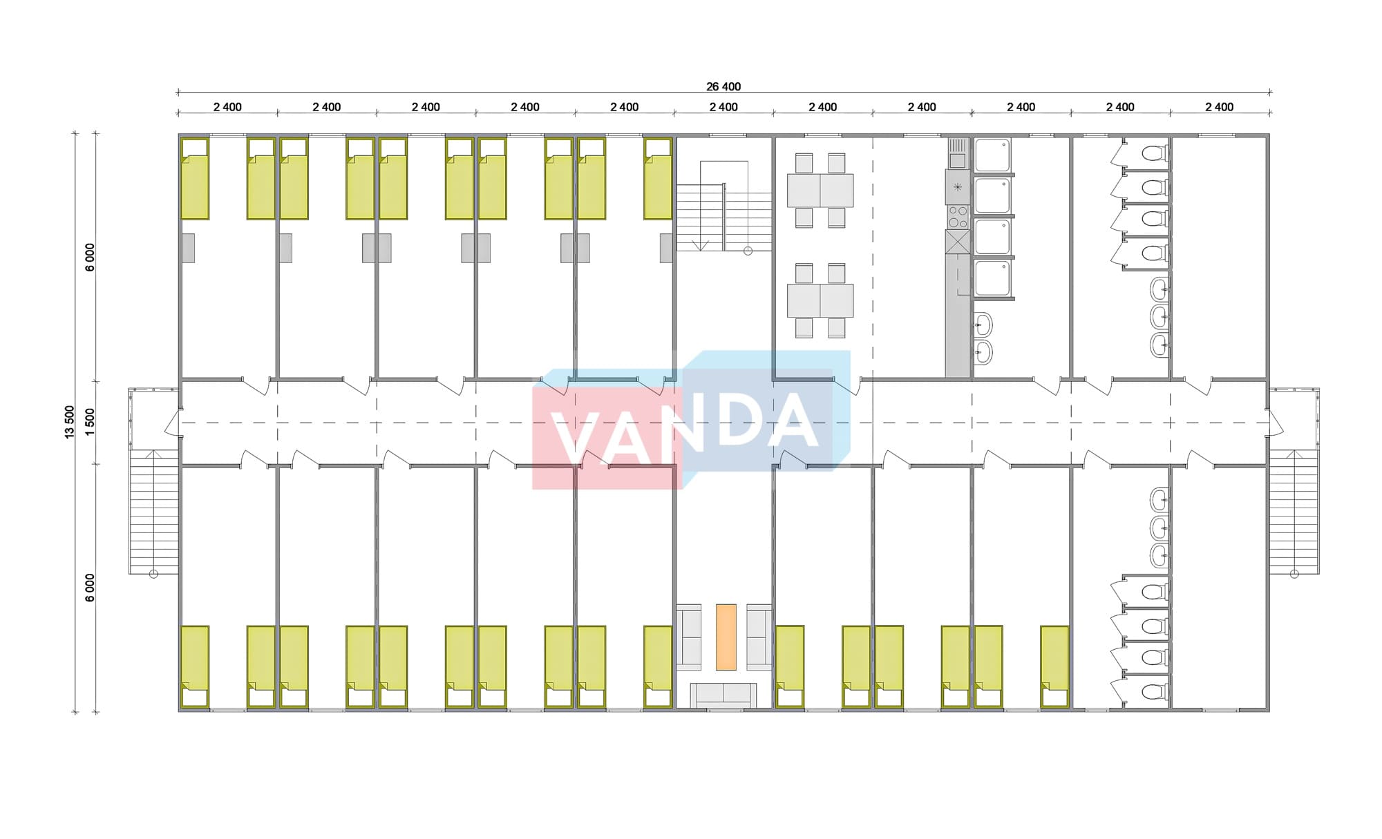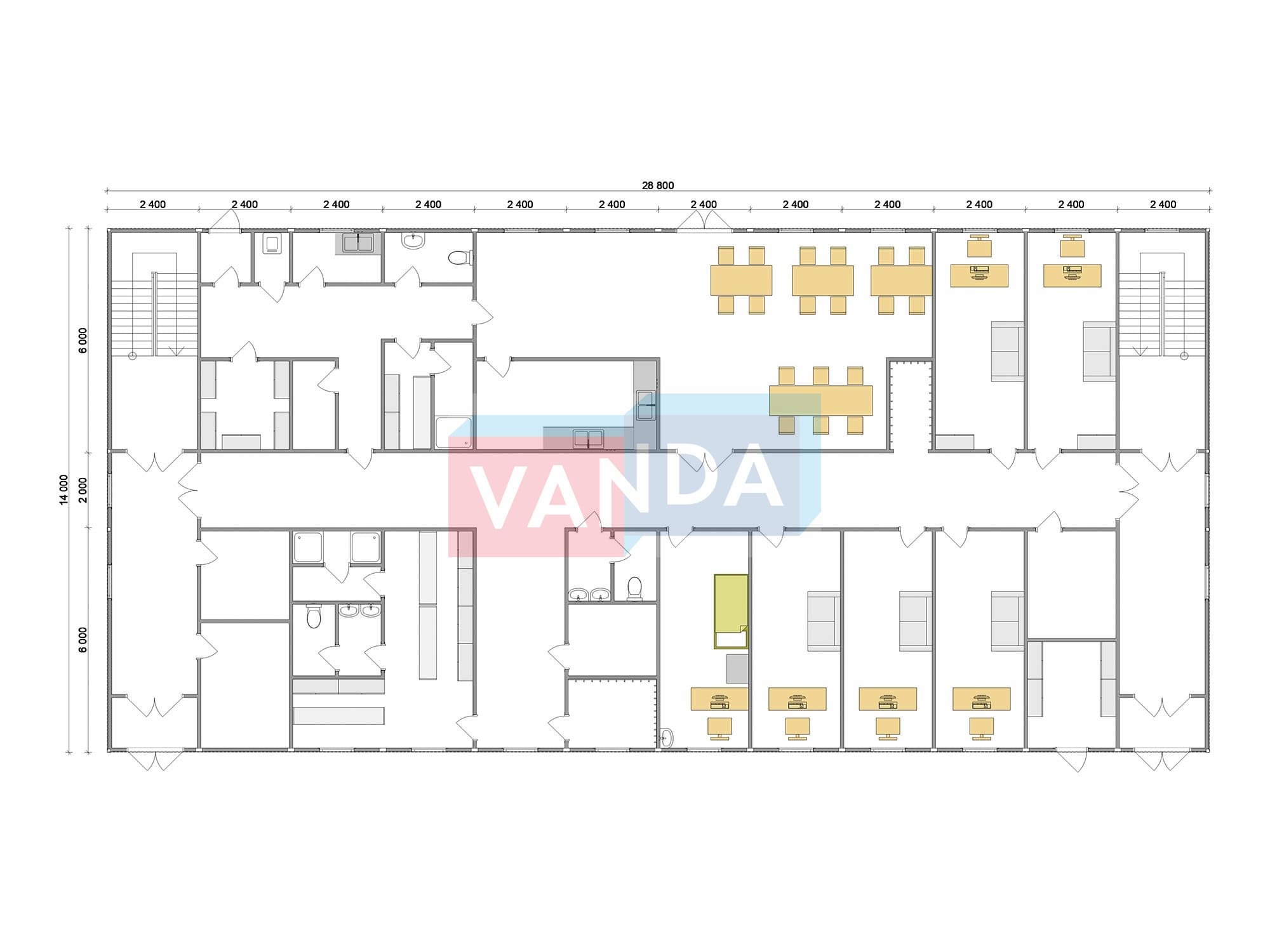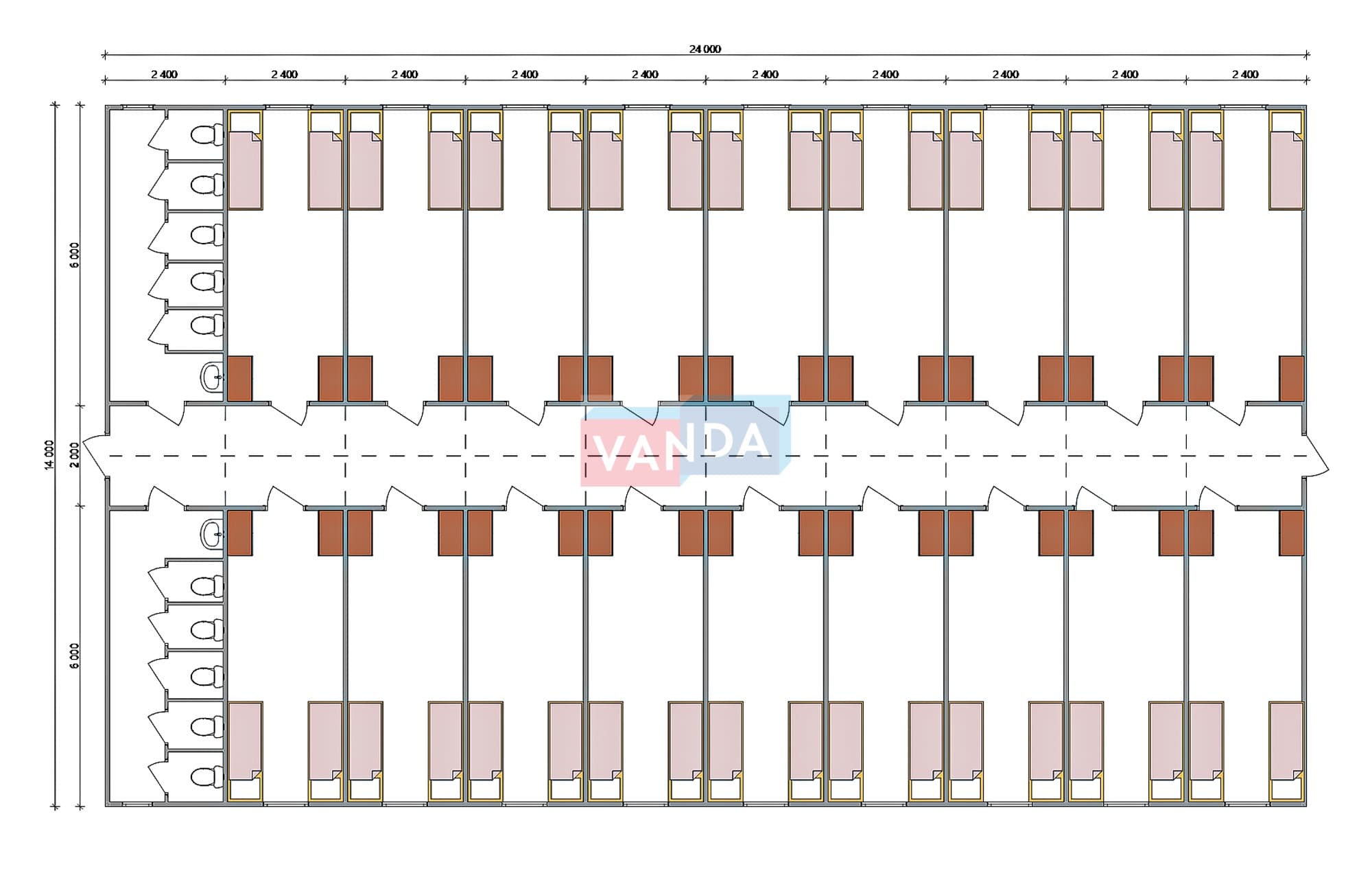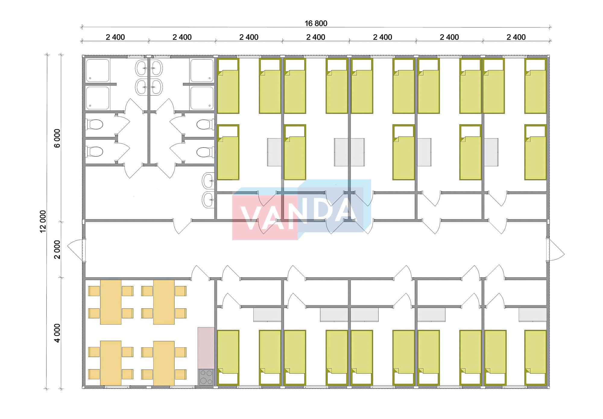 Проект вахтового посёлка 14.0х57,6 14x57.6 806.4 OSB 9 мм. Оцинкованный профлист 20 700 000 р. Уточняйте у менеджера