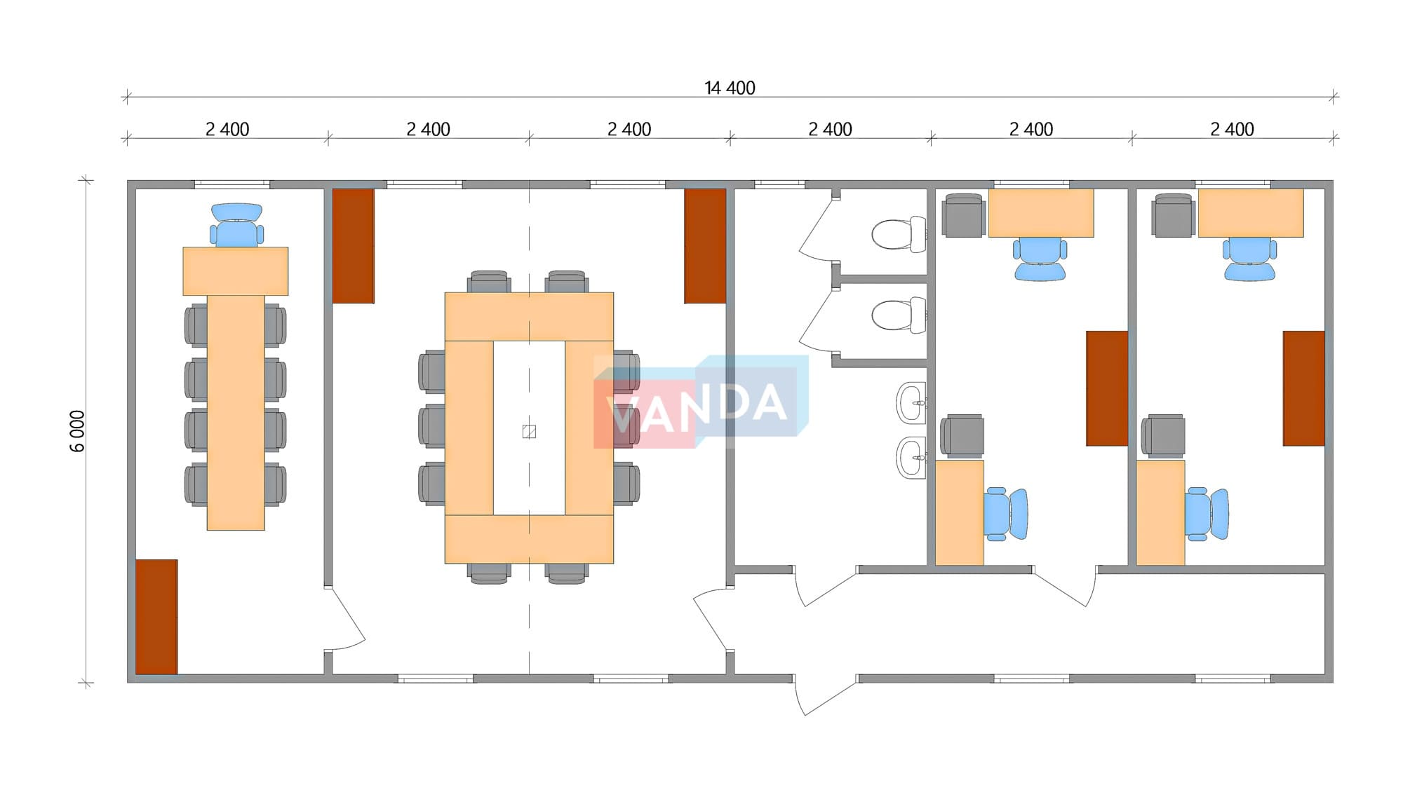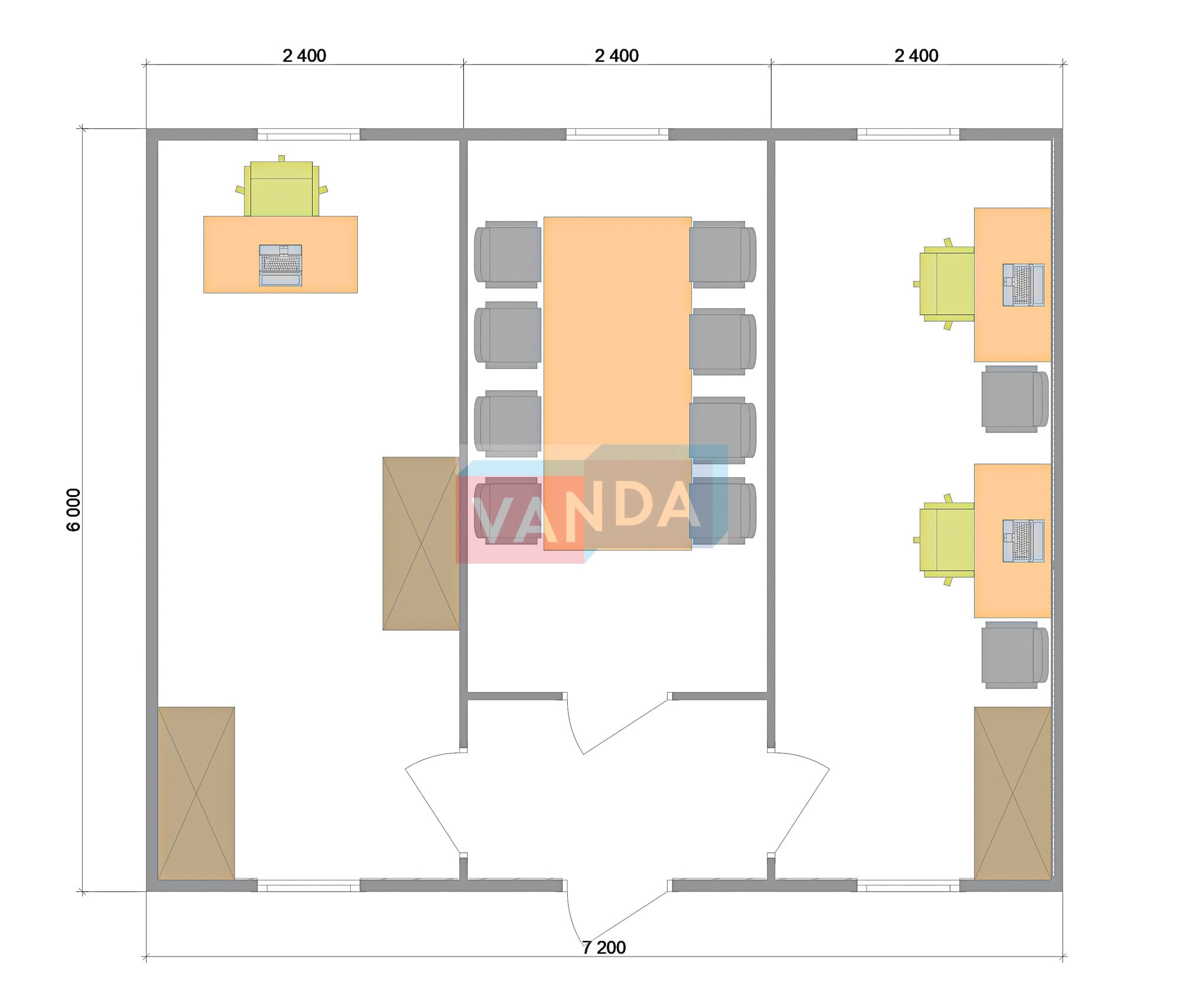 Модульная бытовка с плоской крышей 7.2x6.0 7.2x6.0 43.2 OSB 9 мм. Оцинкованный профлист 650 000 р. Уточняйте у менеджера